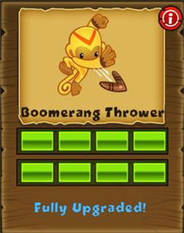 (增加射程)→(增加射程且能擊中迷彩氣球)→(射速下降但可以攻擊18個氣球)→(增加對陶瓷氣球的攻擊,可以攻擊鐵質氣球)