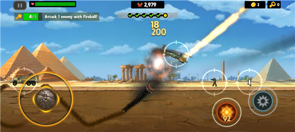 3、你需要不斷的襲擊上面的動物、人類以及各種車輛、飛機(jī)等人類社會的文明產(chǎn)物,或者獲取炸彈、興奮劑等獎勵加強(qiáng)戰(zhàn)斗力,并獲得擊殺經(jīng)驗(yàn)值并升級。