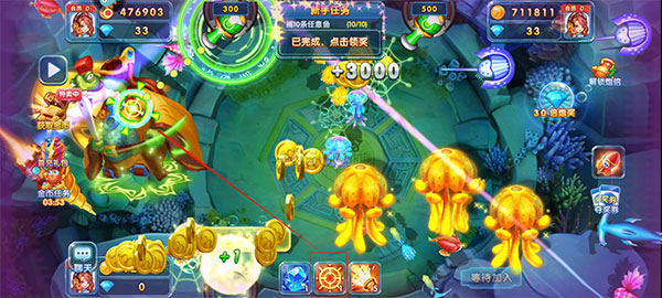 5、遇到BOSS時可以使用狂暴模式道具,能夠讓你的炮彈威力直升到數(shù)十倍,輕松抓捕大魚。