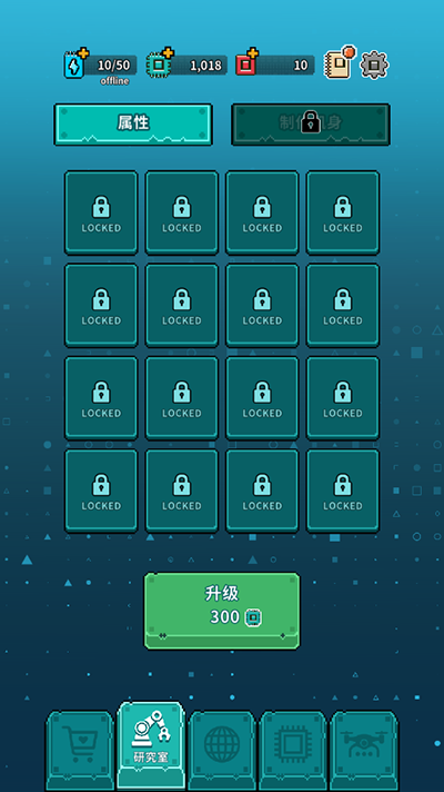 2、設(shè)置好后,點(diǎn)擊下方研究院按鈕可以進(jìn)行屬性升級(jí)、制作機(jī)身;