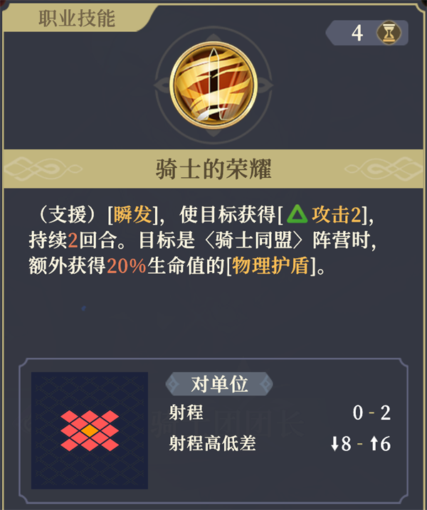 騎士同盟陣營的常見技能,作為瞬發(fā)的輔助技能,偶爾可能有上場機會。