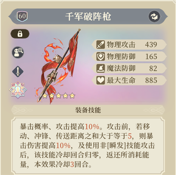 配合專武”法夫納“,帕西法爾的移動力為5格,剛好可以觸發(fā)千軍破陣槍。