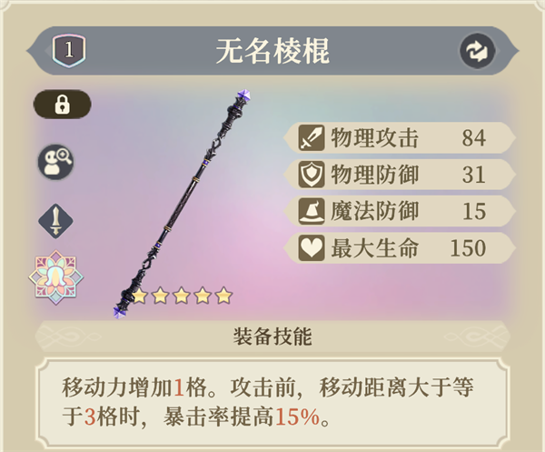 裝備無名棱棍時,[咒鎧·裁罰]狀態(tài)下帕西法爾的移動力為:初始3+專武1+裁罰1+棱棍1=6。