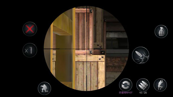 玩家在使用狙擊槍時大致操作位置相同,在點擊射擊按鈕后進入開鏡模式,開鏡模式下右側會顯示開鏡的倍數和退出開鏡模式的按鈕。同時普通模式的按鈕全部保存,玩家可以隨心所欲的操作。