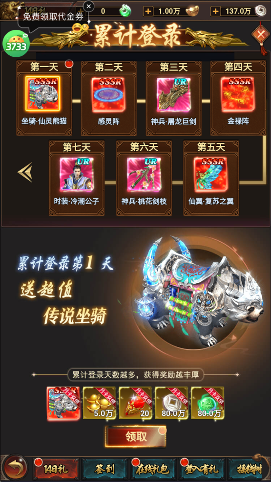2、創角福利:開局萬抽,無限抽獎道具,開局直接滿級VIP