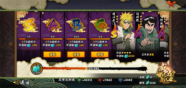 在收集忍者碎片的過程中,忍傳系統也可以幫我們提升戰力。如下圖所示: