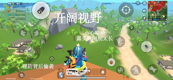 游戲進(jìn)行一段時(shí)間以后,地圖隨機(jī)刷安全區(qū),過幾分鐘會(huì)有一片藍(lán)色的毒替代安全區(qū)外的地方,在毒內(nèi)會(huì)持續(xù)掉血,于是要求玩家在一定時(shí)間內(nèi)跑到安全區(qū)內(nèi)。