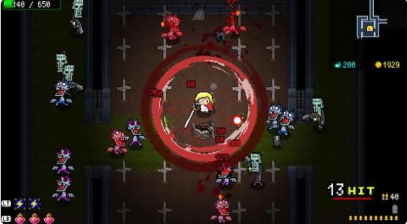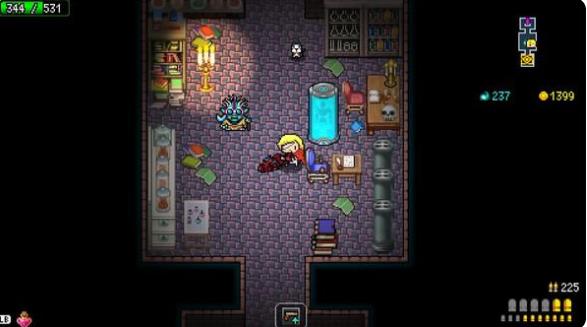 游戲整體節奏還算是比較快地,玩起來感覺有些爽快。玩法跟傳統地牢類游戲,特別是同類型的帶有roguelike元素的2D 射擊游戲 差不多。所有關卡中的地圖全都是隨機生成,人物能夠攜帶近戰武器和遠程武器兩種,在流程中玩家可以通過收集怪物掉落的以及開寶箱獲得的寶物提高角色的屬性。