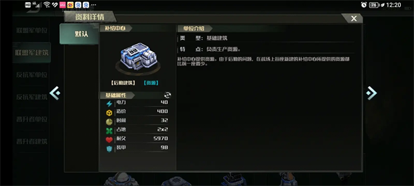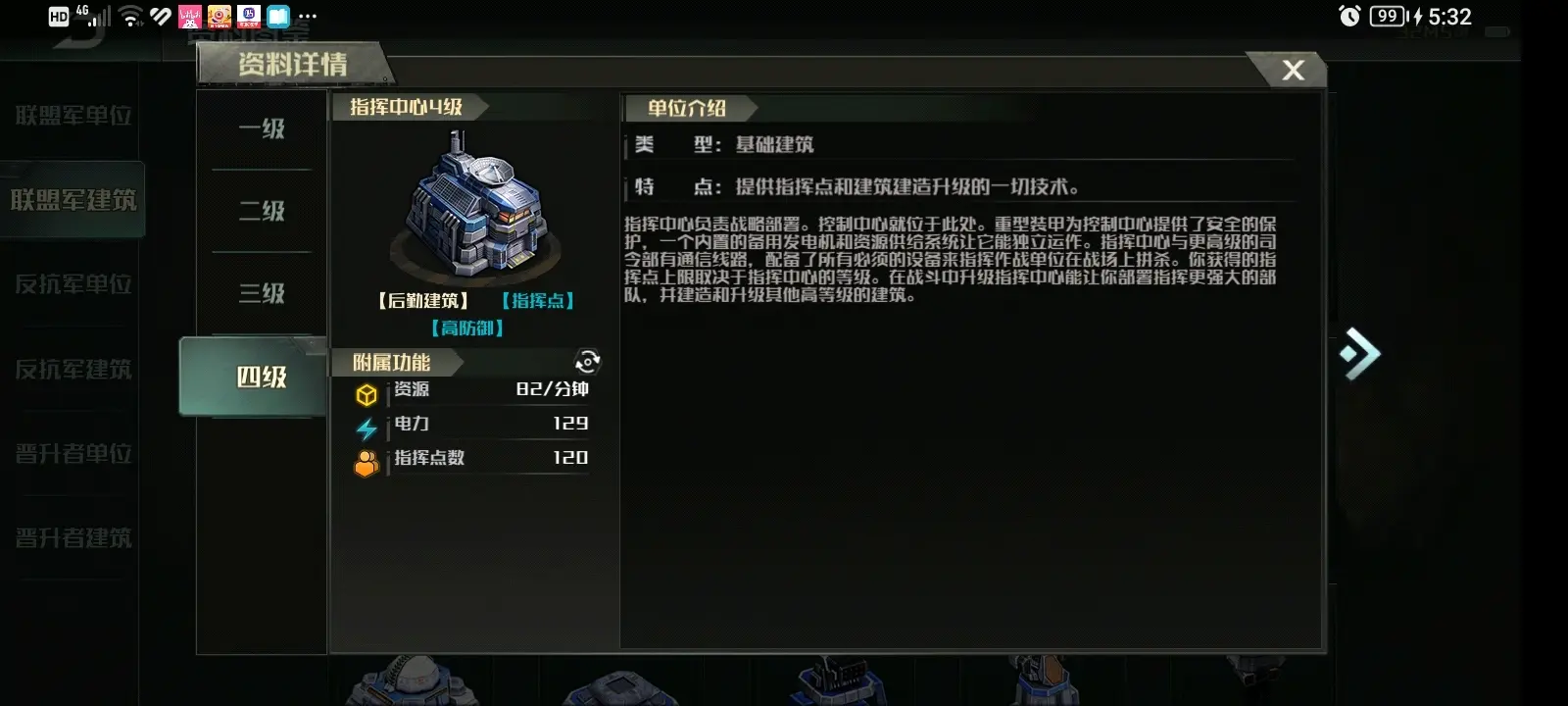 1級:0度電,1000錢,40秒(國服的指揮中心是不能重建的,但國際服可以,具體的我也不了解,但這里只討論國服就沒必要深究了)