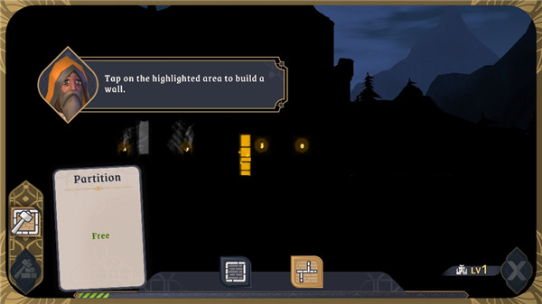 2、找到標記為高亮的區域,開始建造第一個房間;