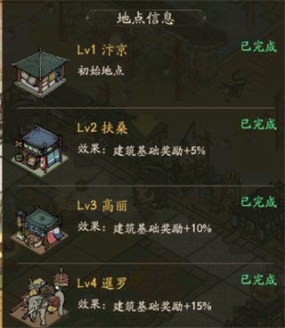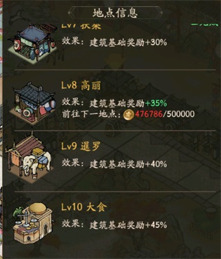 掌柜的金幣數決定了自己所在的地點等級,等級越高的地點建筑基礎加成越高。