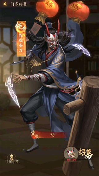 (2)可在觸發密道事件后使用,用于獲得珍貴道具(例如七圣面具,七圣道具集齊100個即可獲得【百戲圣刀】門客)