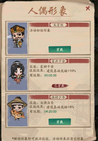 穿戴不同的人偶形象可以帶來不同的建筑基礎獎勵加成,而且人偶效果可疊加。希望能快速賺取更多金幣的掌柜不要忽略這個點哦~