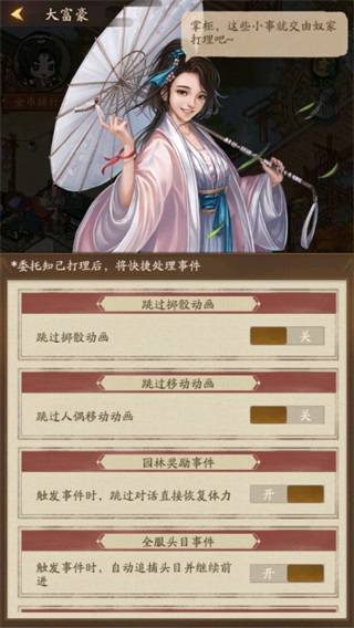 如果覺得每個事件都要觸發點擊太繁瑣了,可以開啟打理,委托知己快捷處理事件喲~這樣會節省很多重復性的操作~