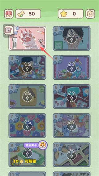 3、第一關是幫助貓咪修復貓爪