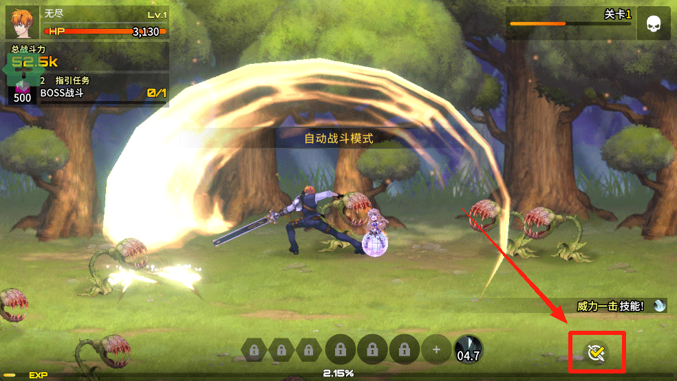3、如果想輕松一點,也可以開啟“自動攻擊”模式,讓角色自動完成戰斗。
