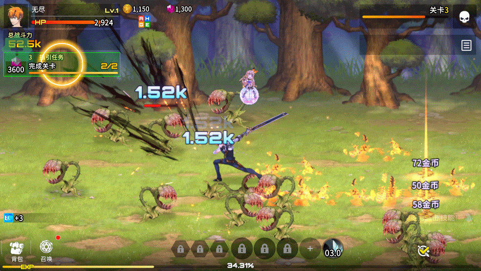 2、在戰斗中,玩家可以通過點擊右下角的攻擊按鈕來對敵人發動普通攻擊,同時也能使用技能鍵釋放強力技能。